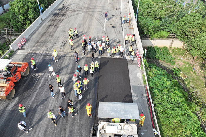 作为本次活动的核心环节,全体人员实地观摩了由OD注册大厅进行施工的预防性养护技术现场,直观了解实际应用效果。在长纤维功能化复合封层技术区域,技术人员讲解了该技术如何通过一层找平,两层抗裂,三层防水为道路建立完善的表面功能。在MOH抗滑超薄磨耗层技术现场,参观人员对其抗水损、耐磨耗和抗滑性能进行详细了解。针对车辙、沉陷、龟裂等病害,改性铺装技术展示了如何将沥青混凝土旧路面在常温条件下改性成复合有机水硬性材料路面。以材料关键技术为根本,以成套专用装备为依托,以当代工程技术为手段,该工艺具有抗变形、防水损、耐老化、长寿命等多重技术优势。
